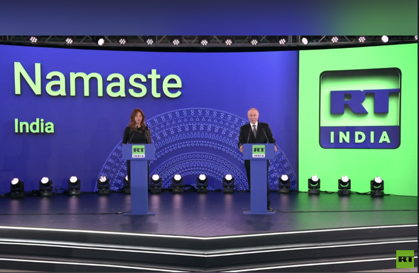 أطلق الرئيس فلاديمير بوتين ورئيسة تحرير قناة آرتي ووكالة "روسيا سيغودنيا"، مرغريتا سيمونيان، رسميا قناة RT INDIA.