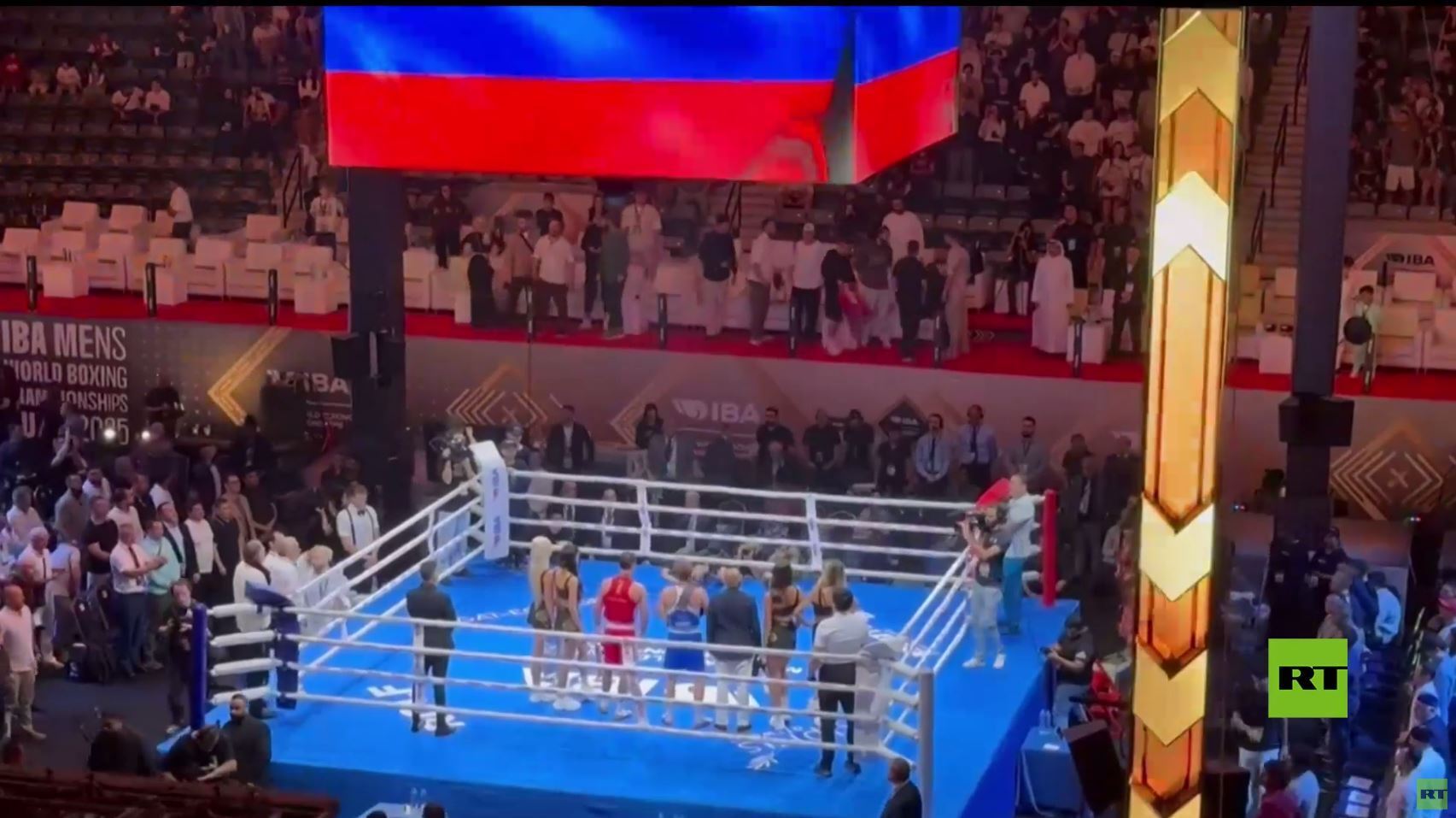 دبي.. النشيد الوطني الروسي في حفل تكريم فسيفولود شومكوف خلال بطولة العالم للملاكمة